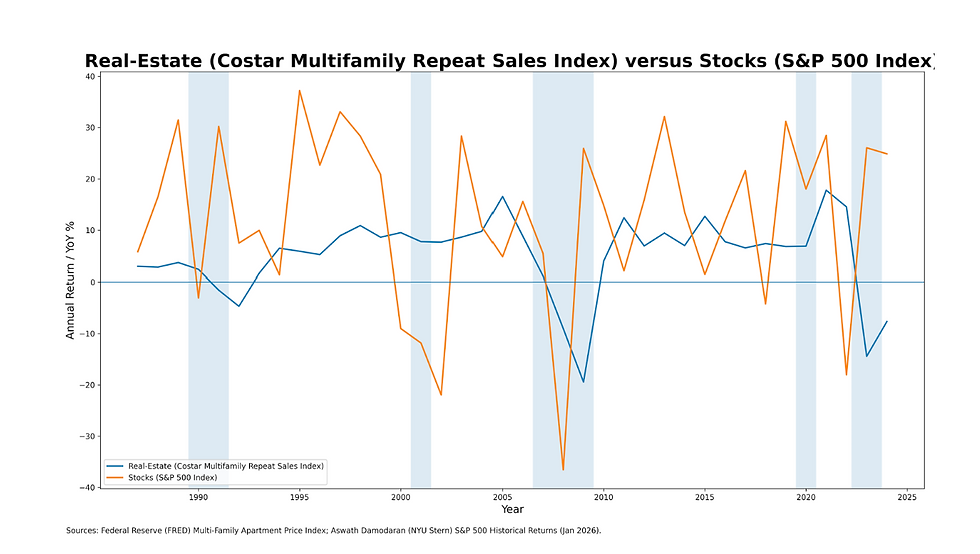 This Part 1 shows how real estate has performed versus stocks, why large losses are so mathematically devastating, and strategies for mitigating that risk.